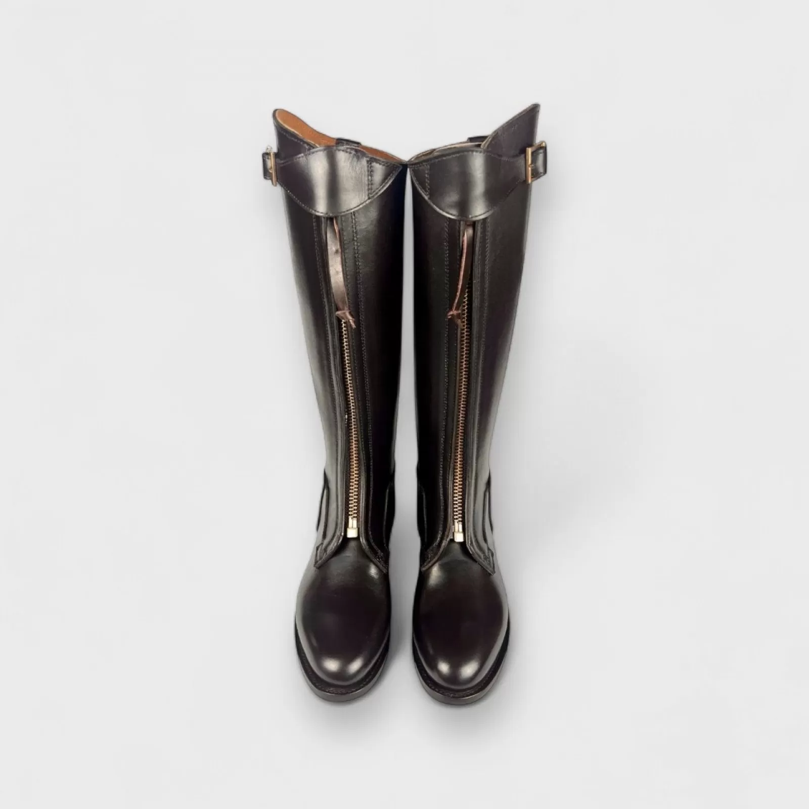 Le cuir de buffle est parfait pour les bottes de polo. Tout comme notre peau, c'est un matériau qui respire, absorbe et libère l'humidité. Les bottes s'adaptent à la température de notre corps, ce qui les rend confortables lorsque l'on joue au polo dans les buts élevés pendant la chaleur estivale de l'Argentine et de Palm Beach ou lorsque l'on joue aux chukkas dans l'arène pendant la saison hivernale humide et froide du polo au Royaume-Uni.