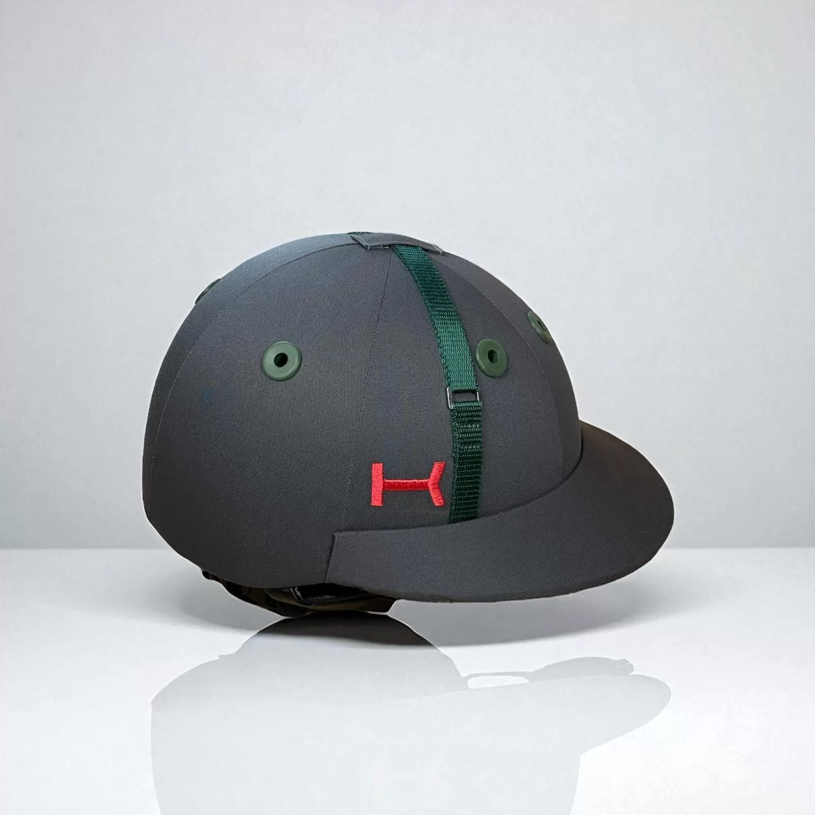 Affirmez votre style sur et en dehors du terrain avec ce casque de polo gris foncé, rehaussé d’œillets et de sangles verts et d’une broderie « K » rouge. Conçu spécialement pour le polo, il offre une esthétique moderne associée à une protection fiable et un confort durable — idéal pour les chukkas d’entraînement, les matchs de club et les journées de tournoi.