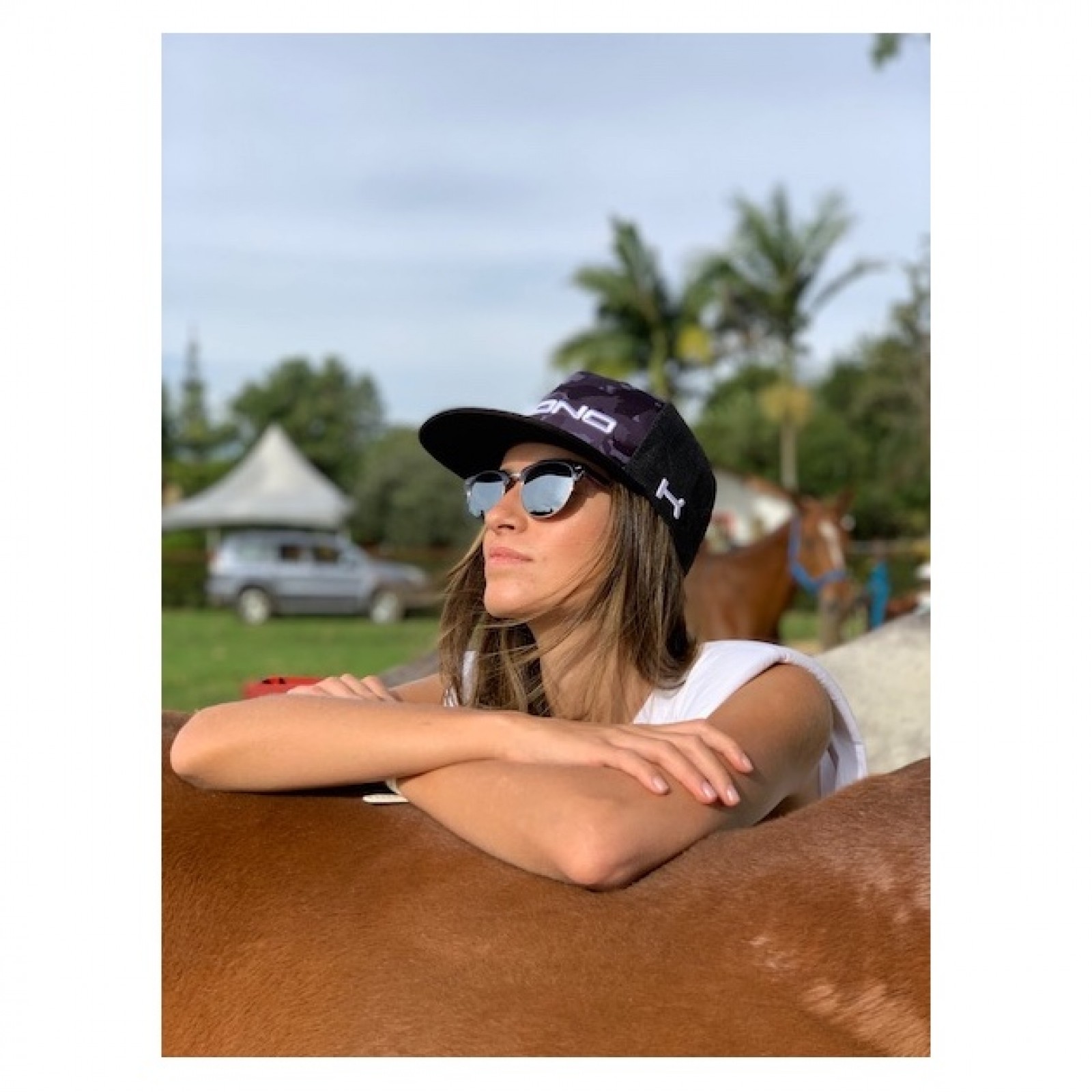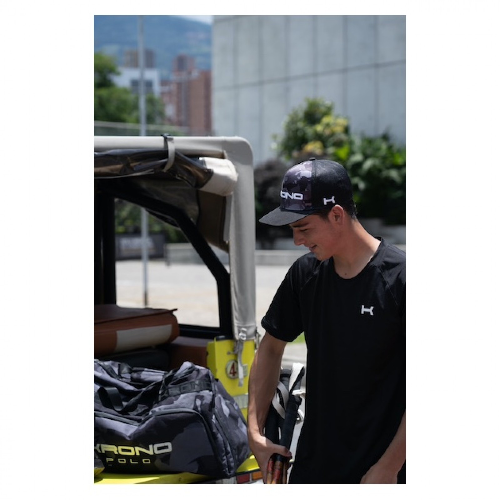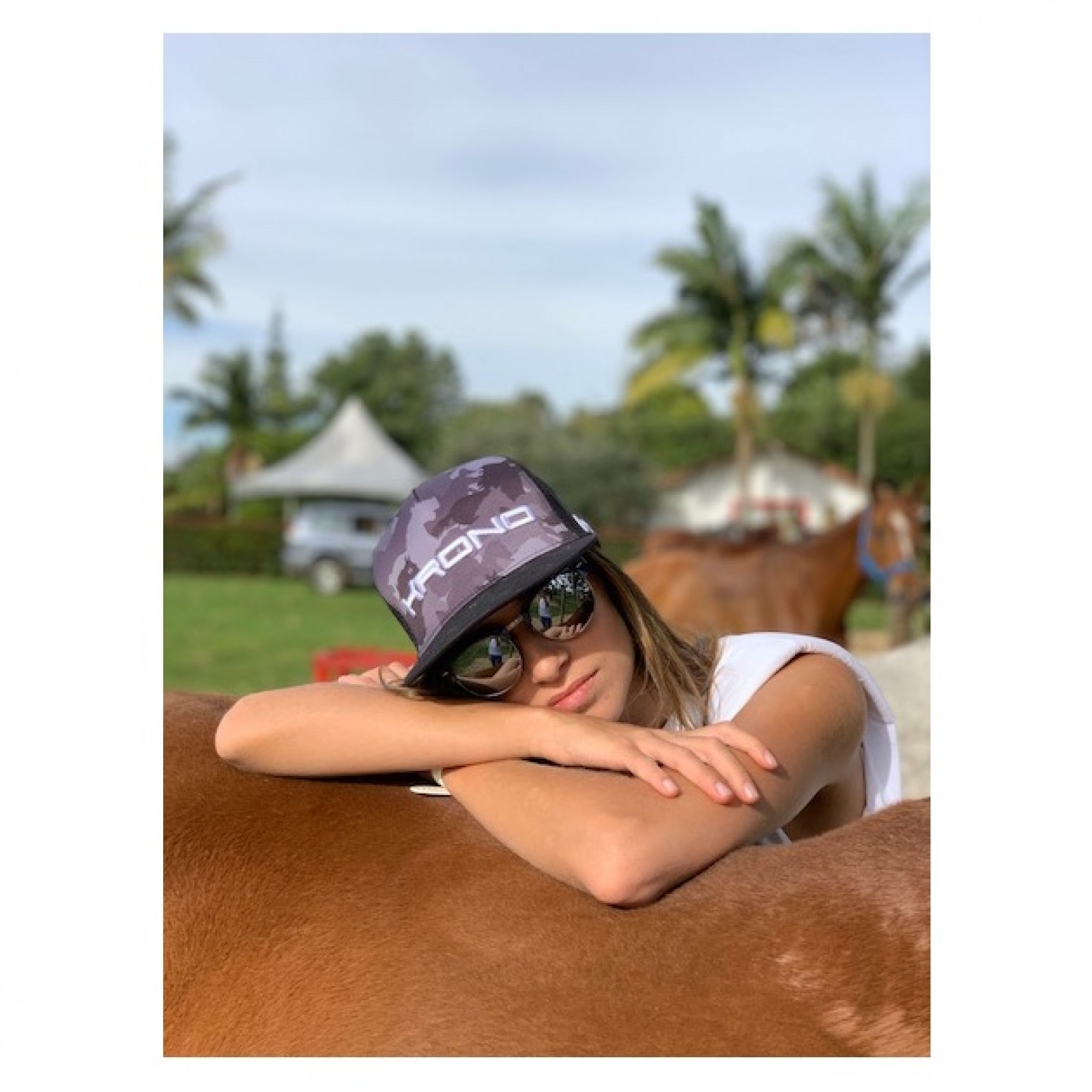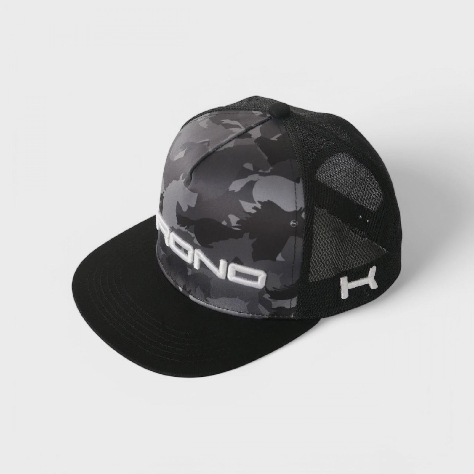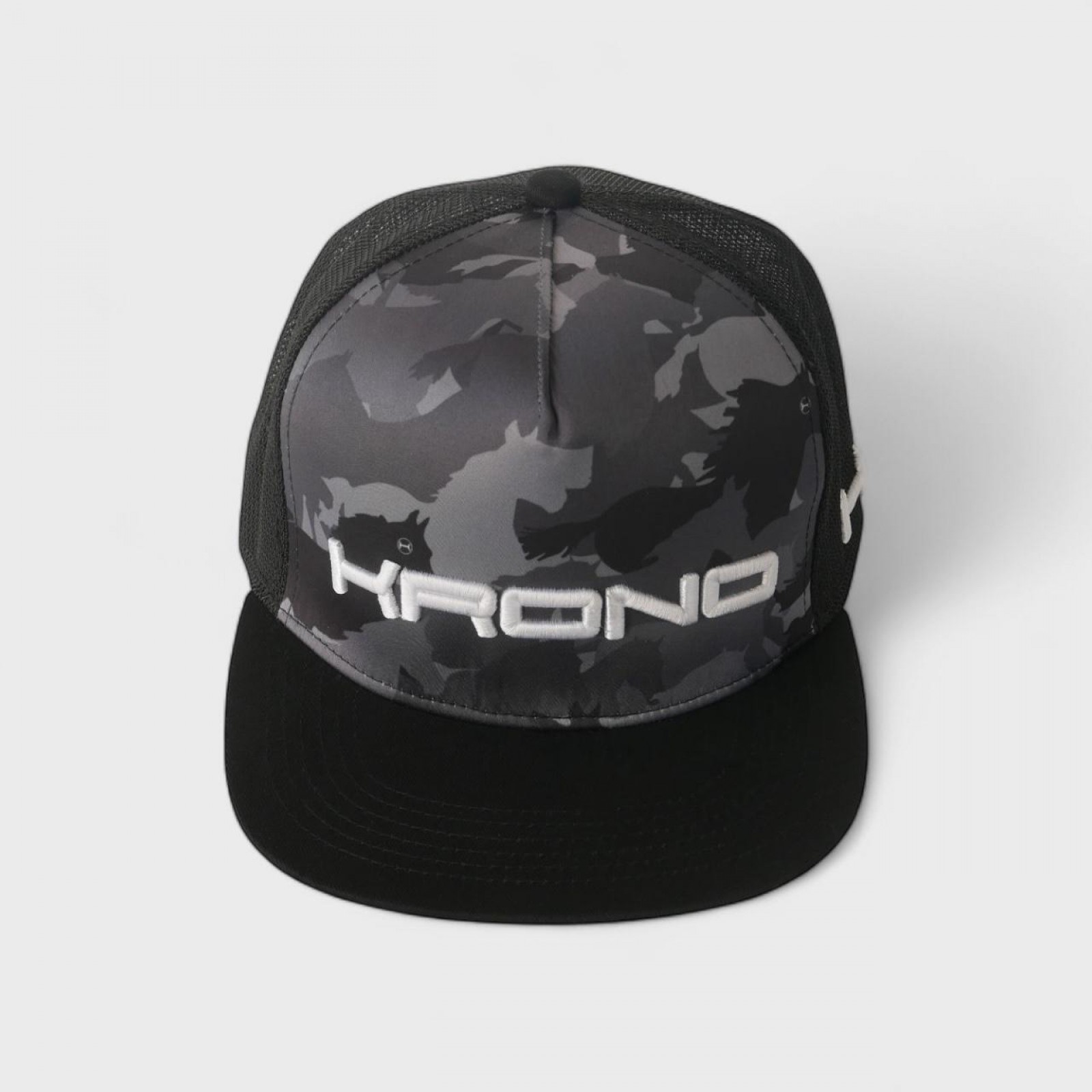 CAMOUFLAGE CHEVAL. La casquette Black Horse Camo présente une sublimation audacieuse inspirée du camouflage de chevaux avec le logo Krono en 3D sur ce style de casquette réglable à col plat. ¡Ce chapeau se fera remarquer lors des chukkas ou partout où vous irez!