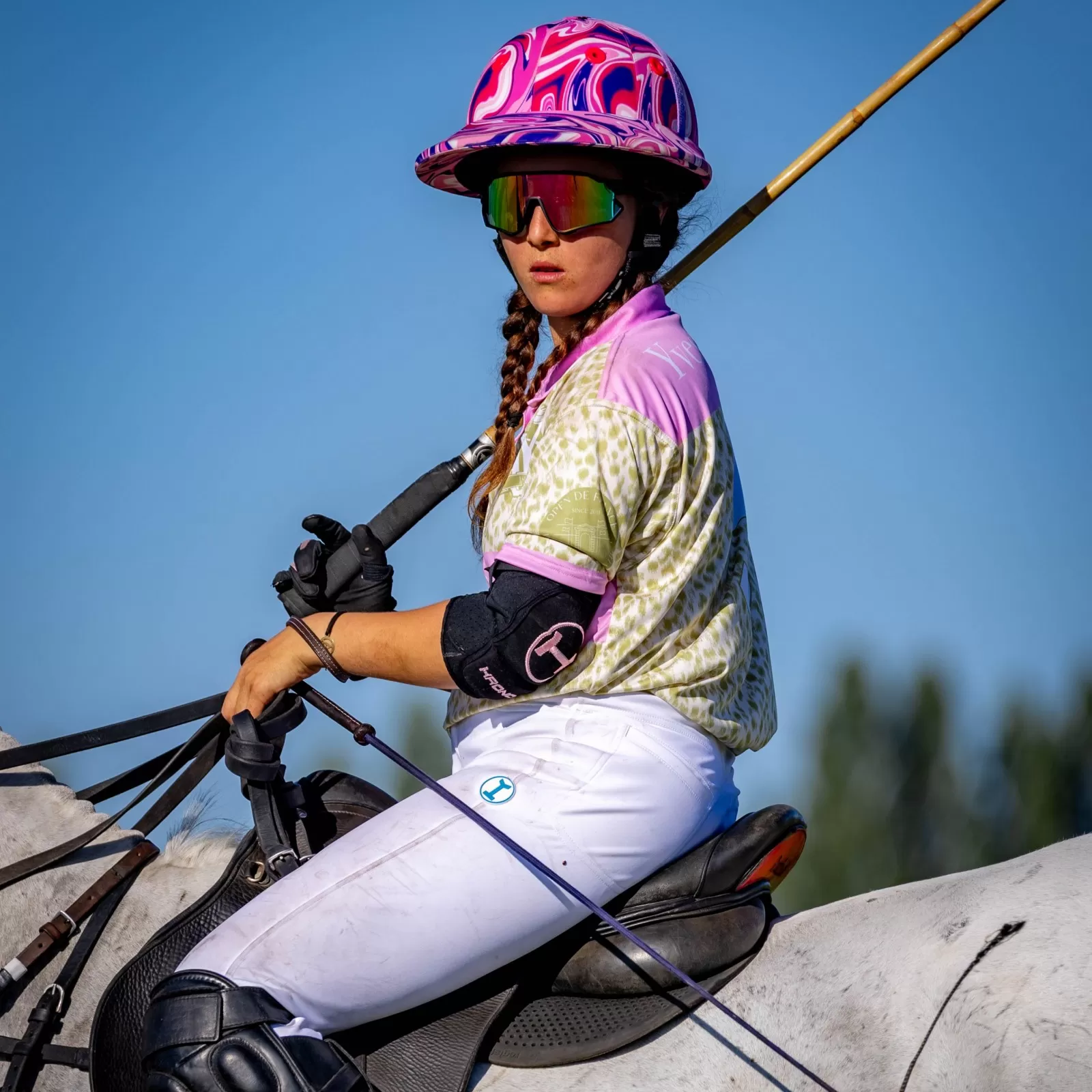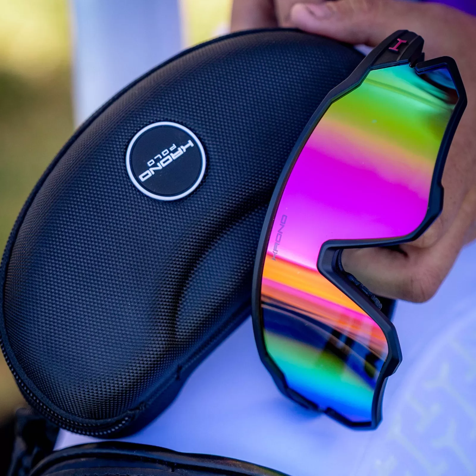 Les Krono Polo Guard – Édition Noir/Rose offrent une protection maximale avec un coloris audacieux. Leur monture de type masque en noir profond est ornée de logos Krono roses, associés à des verres roses pour un look distinctif qui attire l’œil tout en garantissant des performances complètes.