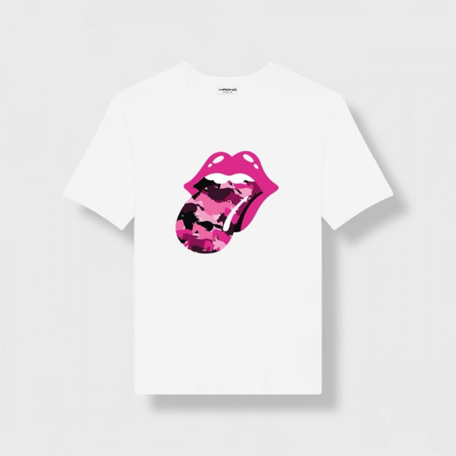 La lèvre camouflage Horse inspirée des Rolling Stones. Ce t-shirt 100 % coton de poids moyen offre un ajustement confortable et vous fera vous sentir bien en soutenant l'un des plus grands groupes de l'industrie de la musique avec notre signature camouflage de cheval.