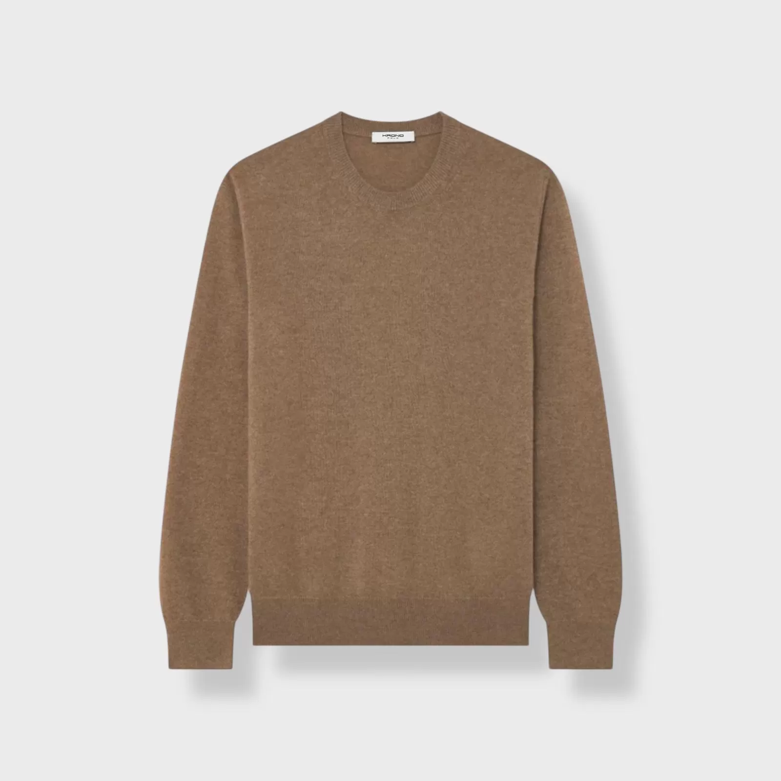 Le pull col rond en cachemire Krono coloris marron clair est confectionné en Italie à partir d’un cachemire d’une douceur exceptionnelle. Sa teinte chaude et naturelle s’inspire de l’univers du polo, rappelant le cuir des selles, les écuries et une élégance intemporelle.