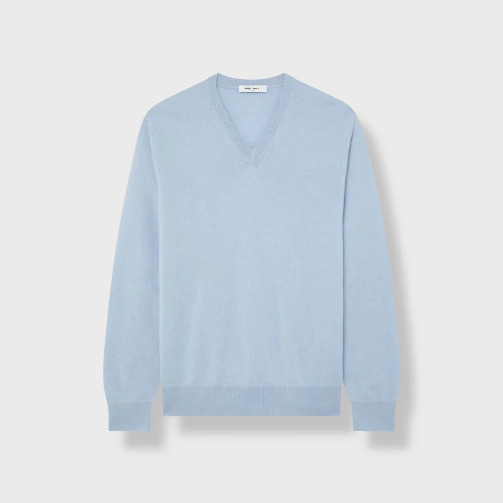 Le pull col V Krono en cachemire – Bleu Clair est confectionné en Italie à partir d’un cachemire premium ultra-doux, pensé pour la vie autour du polo et les déplacements qui l’accompagnent. Inspiré par l’univers du polo, il incarne une élégance naturelle, sans effort.