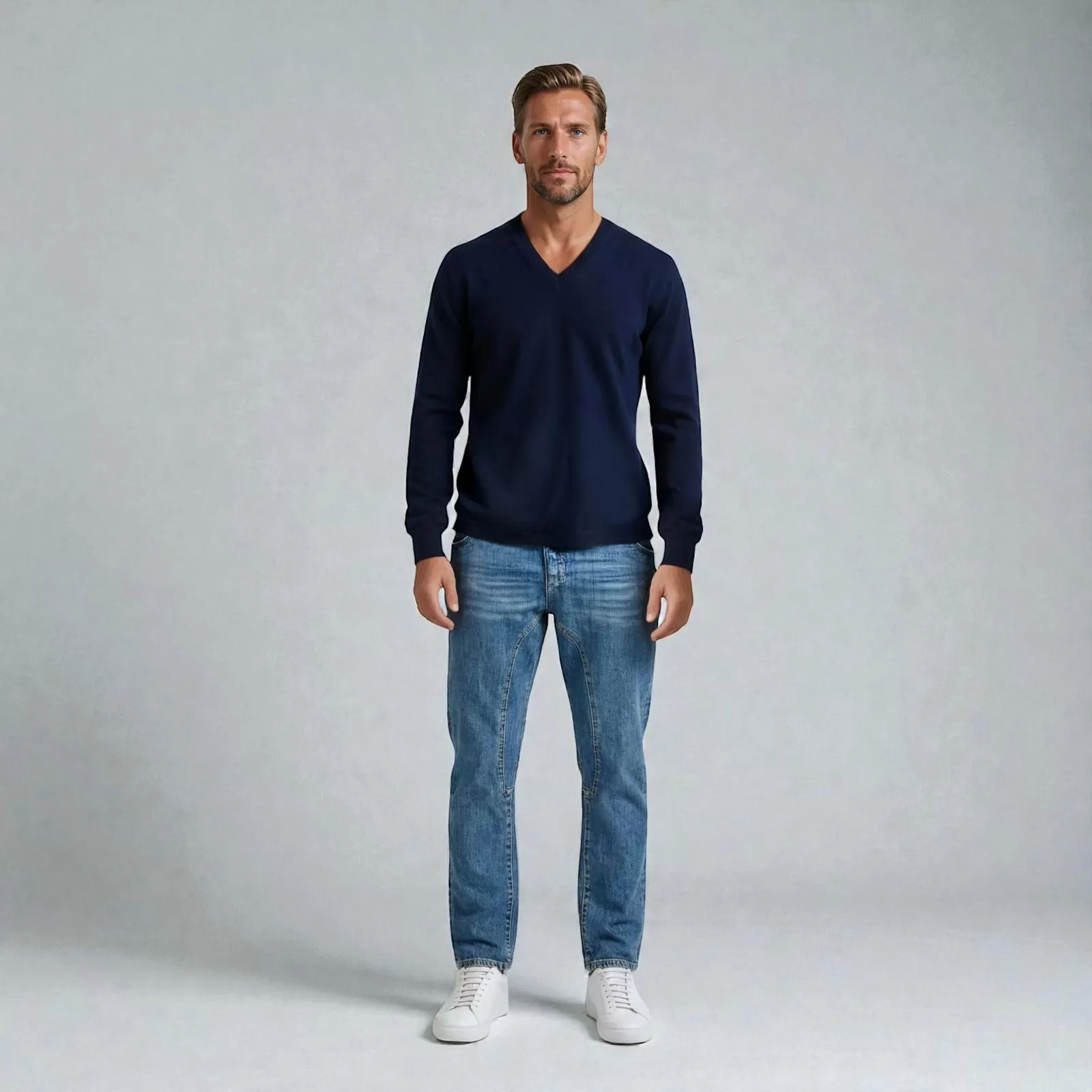 Le pull col V Krono en cachemire – Bleu Marine est confectionné en Italie à partir d’un cachemire premium ultra-doux, pensé pour la vie autour du polo et les moments qui la prolongent. Ancré dans l’univers du polo, il incarne une élégance sobre, profonde et durable.