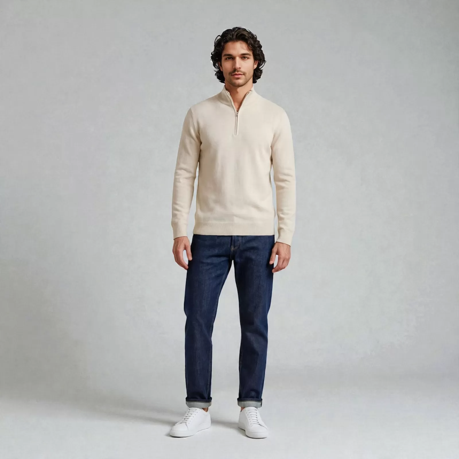 Pensé pour la douceur de la vie autour des chevaux, le Pull Cachemire Quarter Zip Krono Polo en Beige Clair incarne une élégance naturelle et lumineuse, propre à l’univers polo. Confectionné en Italie en 100 % cachemire pur, il offre une sensation de légèreté, une chaleur maîtrisée et une coupe régulière confortable, idéale pour le quotidien.