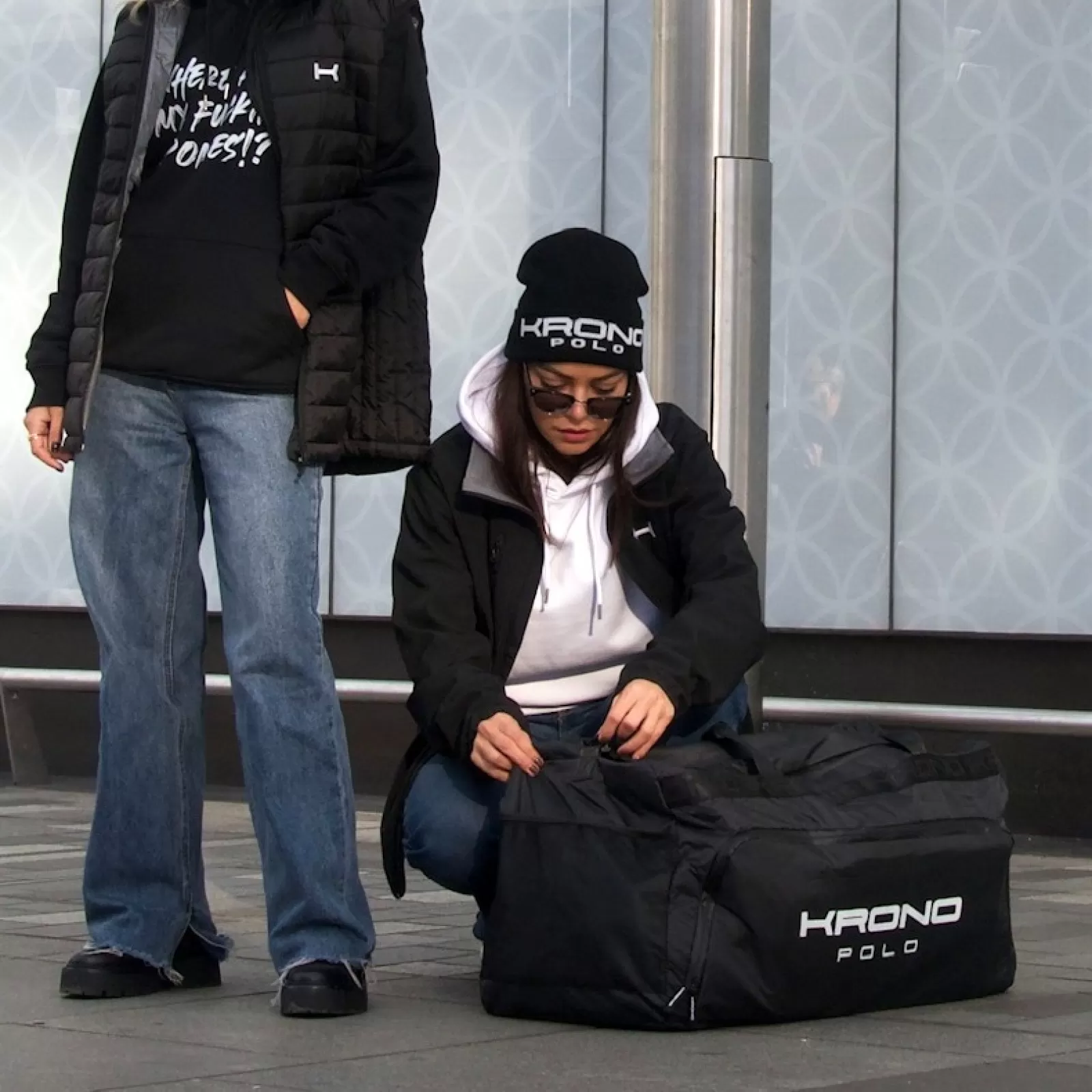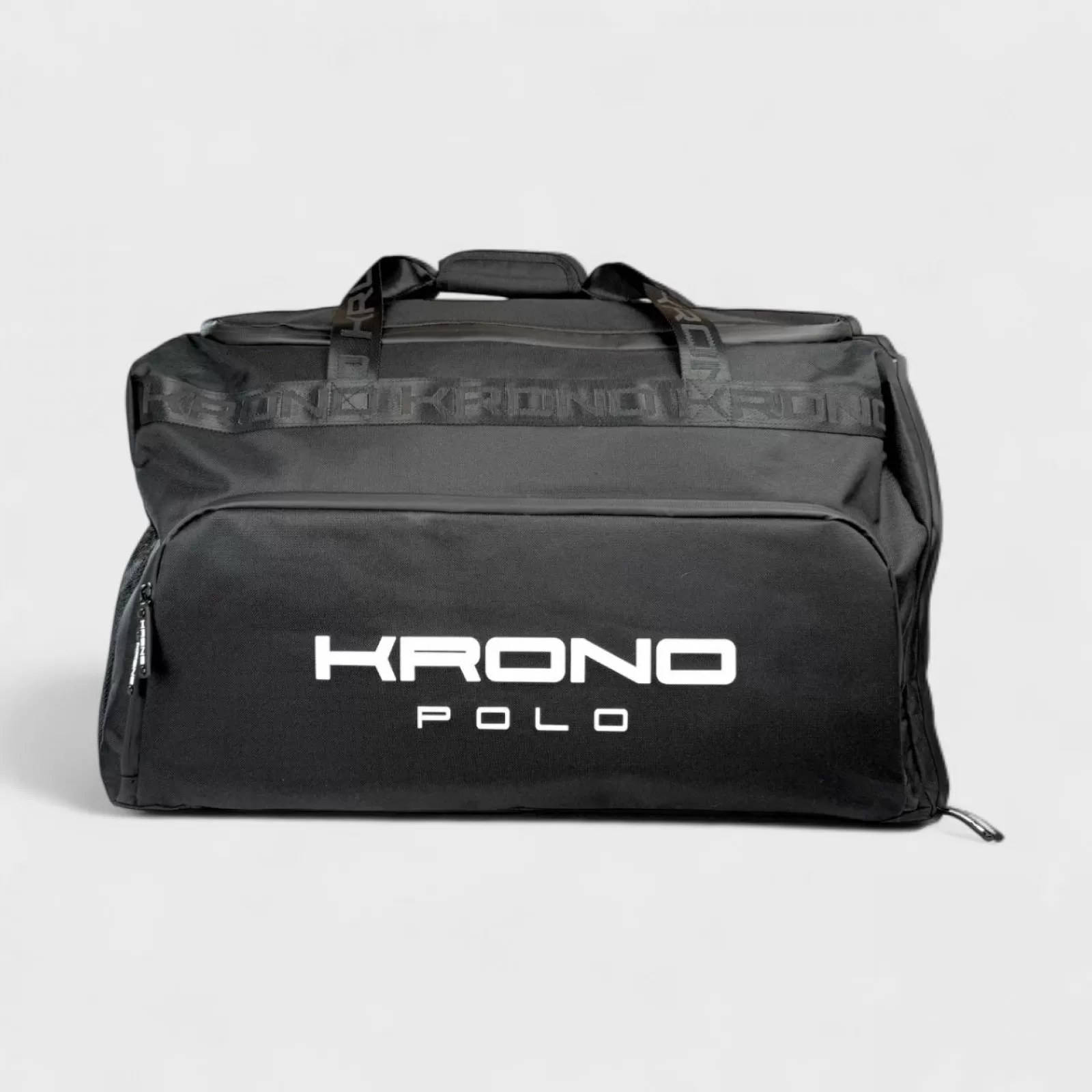 Le sac de polo Krono de couleur noire est le sac de kit parfait pour votre équipement de polo ou vos petits voyages. Il est construit dans un tissu de luxe NUXX Ripstop, qui est un tissu fin, très léger et imperméable. Jetez votre kit de polo, vos bottes de polo, vos genouillères, votre casque de polo, vos coudières, vos gants, vos lunettes de soleil et d'autres articles essentiels pour pouvoir simplement l'attraper et partir quand il est temps de jouer aux chukkas. Nous avons même ajouté un compartiment spécialement conçu pour éloigner votre casque de polo des bottes sales que vous pourriez avoir après une partie de polo.