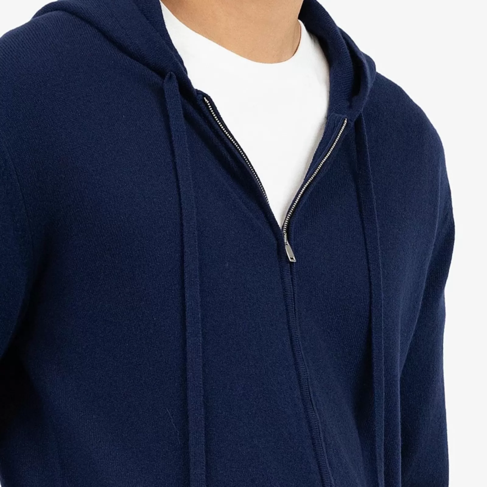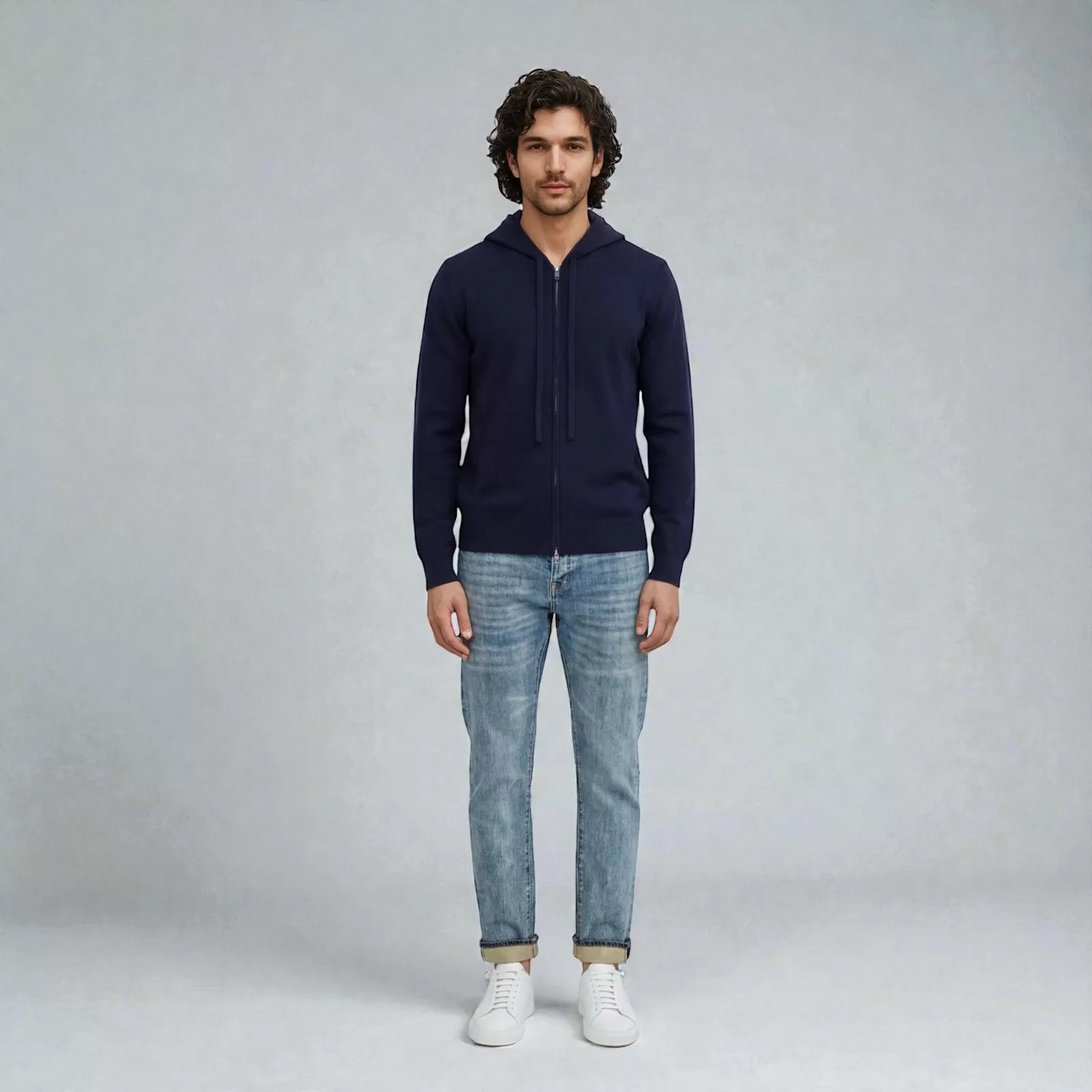 Sweat à capuche Zippé en cachemire Bleu Marine