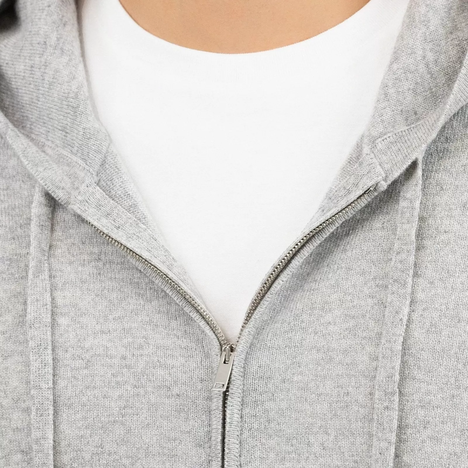 Sweat à capuche Zippé en cachemire Gris Clair