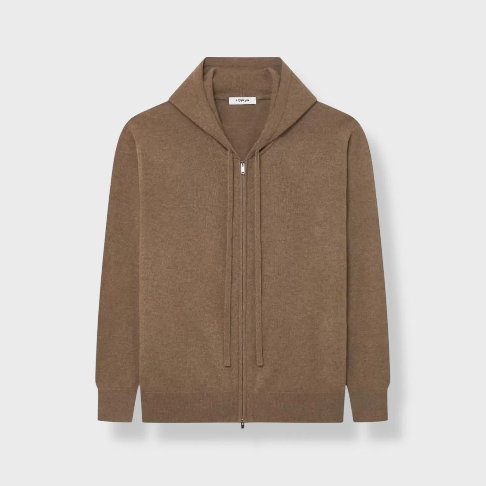 Le Sweat à Capuche Zippé en Cachemire Krono, coloris Marron Clair, incarne une élégance moderne et une polyvalence naturelle — un essentiel de luxe pensé pour le quotidien du joueur de polo. Confectionné en Italie en 100 % cachemire pur, il offre une douceur exceptionnelle, une chaleur naturelle et une allure raffinée dans une silhouette épurée et contemporaine.