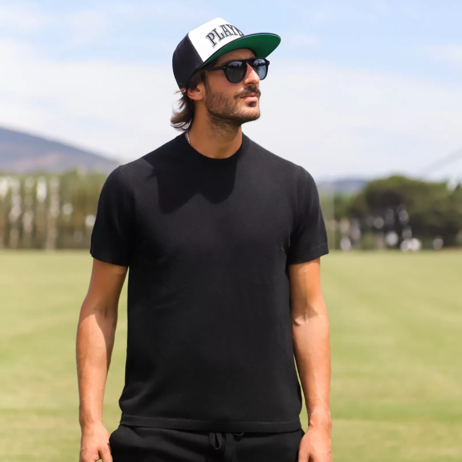 Le T-shirt en cachemire Krono noir est confectionné en Italie à partir du plus fin cachemire pur, alliant le confort décontracté du sportswear à l’élégance discrète de l’univers du polo. D’une douceur exceptionnelle et naturellement respirant, il est pensé pour accompagner les journées au haras comme les moments plus habillés au club.